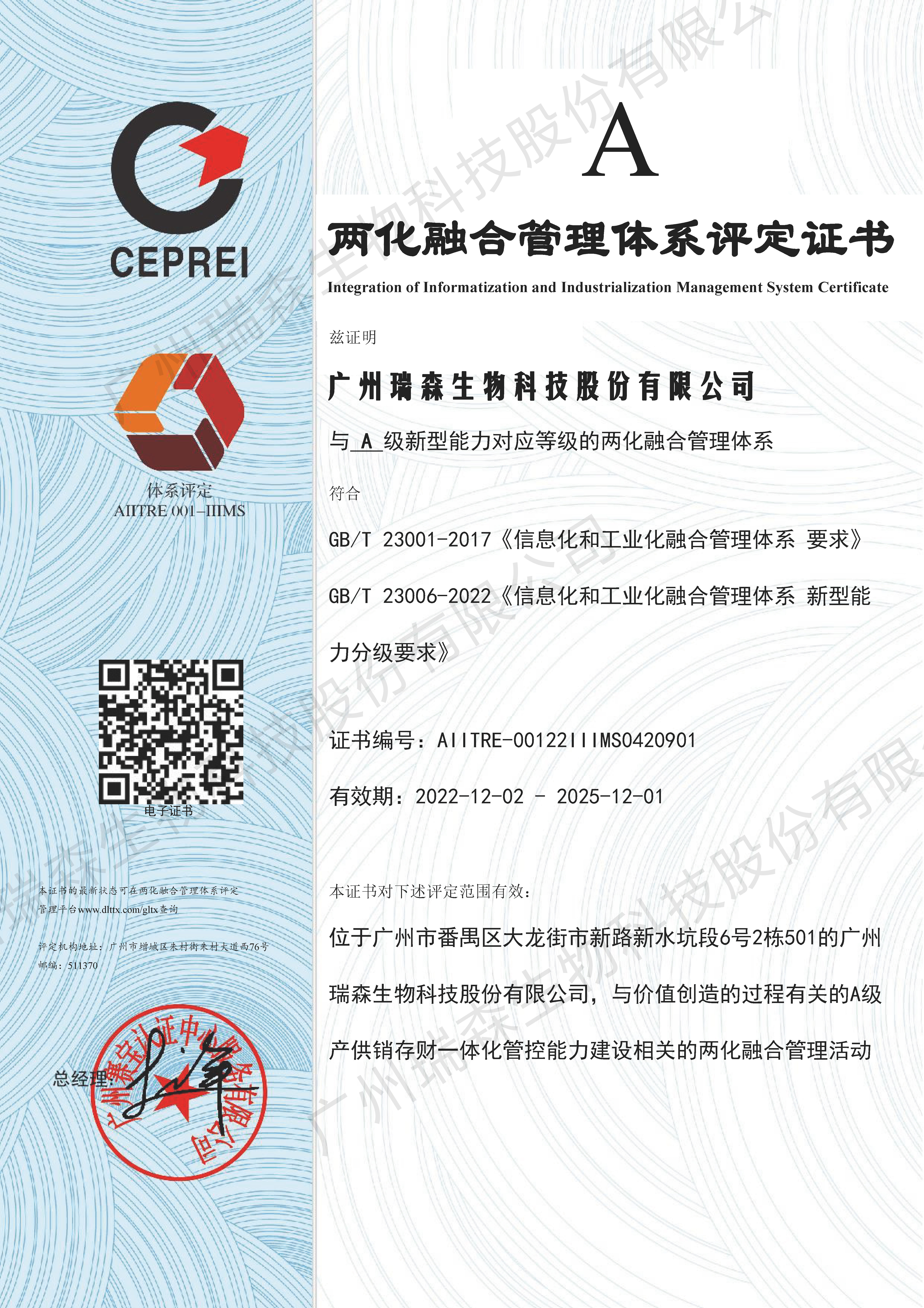 熱烈祝賀瑞森生物獲得A級(jí)“兩化融合”管理體系認(rèn)證!