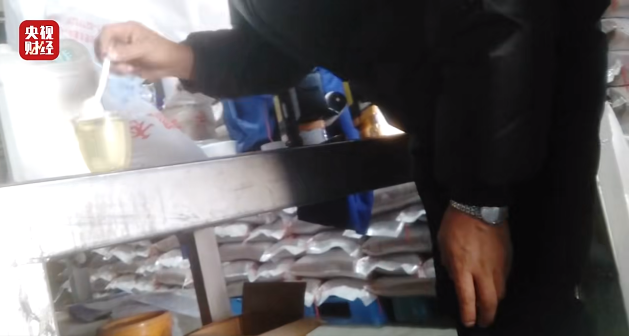 無獨有偶,在安徽香王糧油食品科技有限公司的倉庫里,堆放著數(shù)十噸大米,外包裝寫著泰國茉莉香米,原料產(chǎn)地泰國。但公司負(fù)責(zé)人沈經(jīng)理承認(rèn),這些大米同樣和泰國香米沒有任何關(guān)系。沈經(jīng)理介紹道,本地產(chǎn)大米原本沒有泰國茉莉香米的香味,但該款大米有一股淡淡的清香,是經(jīng)由一種香精調(diào)配而成,此種香精呈淡黃色,聞起來有一股淡淡的清香味,僅僅需幾滴,便能使本地大米散發(fā)出淡淡的泰國茉莉香米的香味。李經(jīng)理表示,在生產(chǎn)時,他們會把香精掛到提升機上,通過注射器加到大米里,年銷量能達(dá)到一千余噸。與此同時,在淮南市楚豐工貿(mào)有限公司生產(chǎn)車間同樣存在香精,工廠負(fù)責(zé)人仇經(jīng)理坦承,他們也是在本地產(chǎn)大米中添加香精,冒充香米。而關(guān)于香精從何而來,香王公司和楚豐公司兩位負(fù)責(zé)人都承認(rèn),他們的香精是從上海一個名為郭經(jīng)理處買來的。